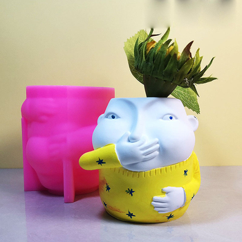 Nouvelle arrivée tendance pincement nez petit garçon succulente plante en pot moule maison bureau décoration résine Silicone moule