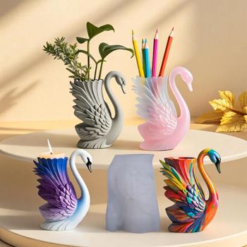 Nova Chegada DIY Cola Filme com Aromaterapia Vela Copo Vaso De Armazenamento Silicone Mold Swan Flower Pot Gesso Copo Molde